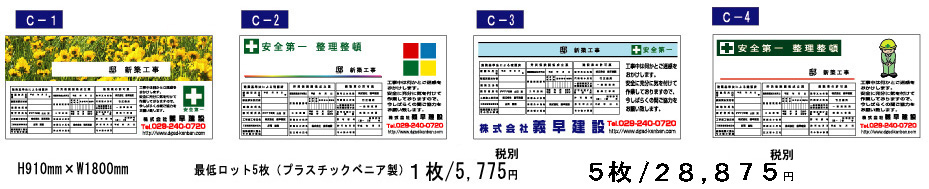 PR用オリジナルデザインの現場シート・養生シート 法定表示板 建築基準法による確認済・ 労災保険関係成立票・建設業の許可票を 完全自社製品にて日本全国、通信販売いたします。 |